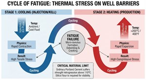 Geothermal wells are frequently drilled into hard, fractured igneous and metamorphic rocks, which already create complex in-situ stress regimes. When the thermal stresses induced by production and injection cycles are added to this mix, the stress on the casing and cement becomes extreme. Standard O&G barrier philosophies—typically designed for relatively stable temperature environments—do not adequately address the durability needed to withstand this repeated thermal stress.