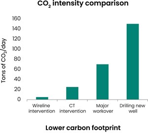 Another reason for taking a second look at production from mature assets is that it improves sustainability. Producing a greenfield barrel requires exploration, drilling campaigns, a production platform and other facilities, all of which increase the carbon footprint of operations. Typically, mature fields have a lower carbon footprint, due to the re-use of existing infrastructure and possibly more efficient extraction methods that have been refined over time, Fig. 3.