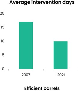 There are compelling economic reasons to enhance output from existing assets. Brownfield production increases can be achieved in a shorter cycle than greenfield developments—yielding returns from weeks or months of planning instead of requiring years, Fig. 1. And most intervention and production enhancement programs cost normally less than $10/bbl, Fig. 2.