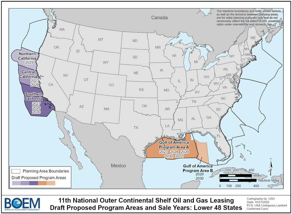 Well, finally, the waiting is over. On Nov. 20, DOI announced the new offshore strategy, and it is significant. DOI has composed a Secretary’s Order titled “Unleashing American Offshore Energy,” directing the Bureau of Ocean Energy Management (BOEM) to take the necessary steps, in accordance with federal law, to terminate the restrictive Biden 2024–2029 National Outer Continental Shelf Oil and Gas Leasing Program and replace it with a new, expansive 11th National Outer Continental Shelf Oil and Gas Leasing Program by October 2026. As part of this directive, DOI is releasing the Secretary’s Draft Proposed Program for the 11th National Outer Continental Shelf Oil and Gas Leasing Program.