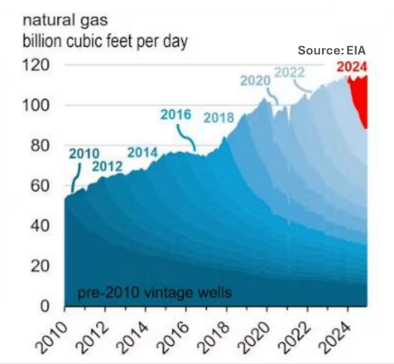 LNG and AI data centers will demand ~25 Bcfd more of U.S. production by 2030. Figure 5 shows what drillers needed to get done in 2024, just to keep production flat at about 107 Bcfd, it took 123 rigs. By 2030, to meet AI and LNG export demand, the curve will need to grow faster than it has ever grown and extend off the frame up to 140 Bcfd or so. This all begs the question: is the gas even there to be had?