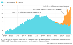 The effect of unconventional oil production on world prices is pretty well known. Figure 1 shows how unconventional oil production has grown in the U.S. That growth accounts for over half of the world’s increased production since 2015. This, of course, has had the effect of keeping the oil price lower than it would have otherwise been.