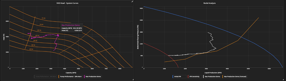 The Max Production platform also includes a Production Forecasting and Optimization (PFO) feature, Fig. 2. This nodal-based, real-time analytics tool integrates inflow performance relationship (IPR) curves, comparative lift modeling and live operational data. By combining real-time measurements with physics-based modeling, PFO creates a dynamic performance environment that enables engineers to evaluate lift systems, optimize pump operation and predict future performance under various scenarios.