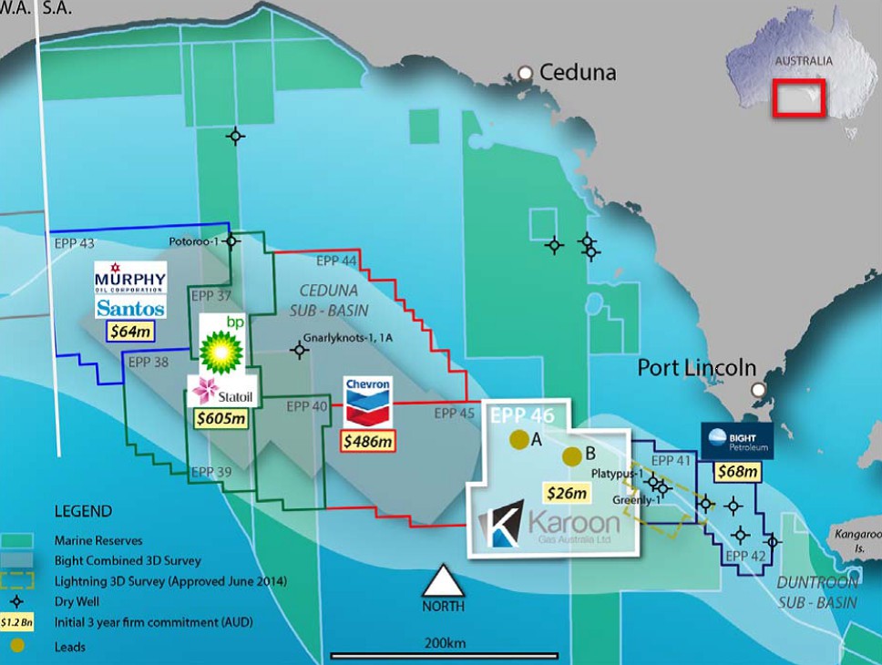 MELBOURNE, Australia -- Karoon Gas Australia has been awarded a license for exploration permit EPP46. The permit covers 17,793 km2 of Australia’s most active and prospective frontier oil province, the Ceduna sub‐basin, in the Great Australian Bight (GAB), offshore South Australia.