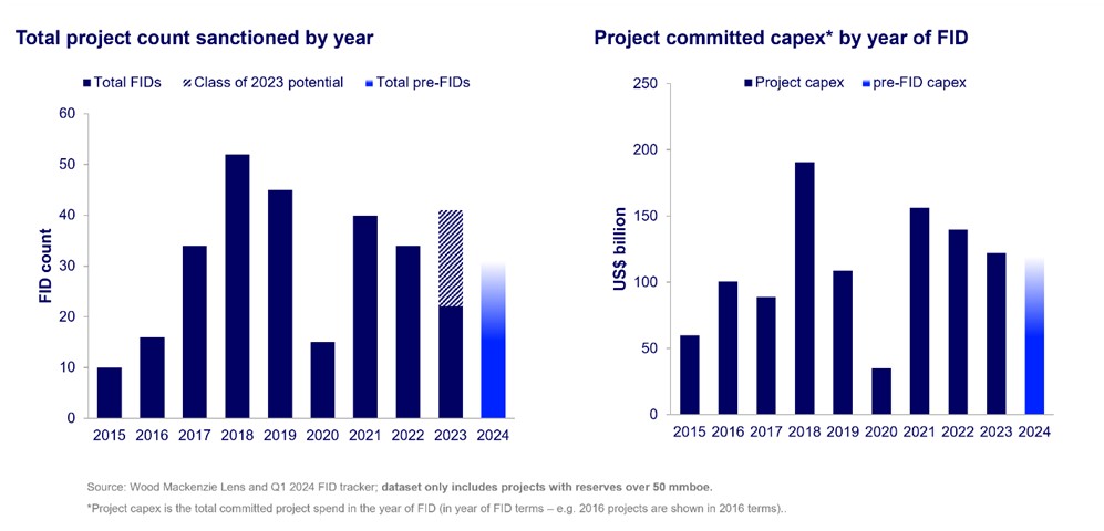 Wood Mackenzie: 30 upstream projects holding 14 Bboe and $125 billion in investment to reach FID in 2024