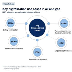The oil and gas industry could capture more than $320 billion in savings over the next five years by accelerating digital adoption across core operational domains, according to new analysis from Rystad Energy. The findings underscore how digital technologies—once considered optional enhancements—are rapidly becoming essential tools for efficiency, resilience and long-term competitiveness.