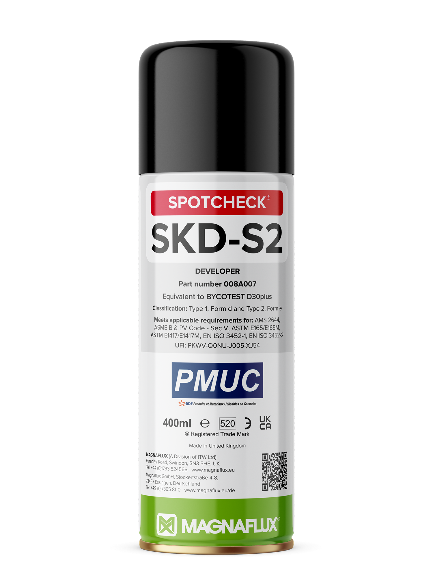 SKD-S2 helps speed up the inspection process by going on easily, drying quickly, promoting faster indication formation and minimizing post-inspection cleaning. It is ideal for machine shops, weld testing and field applications.