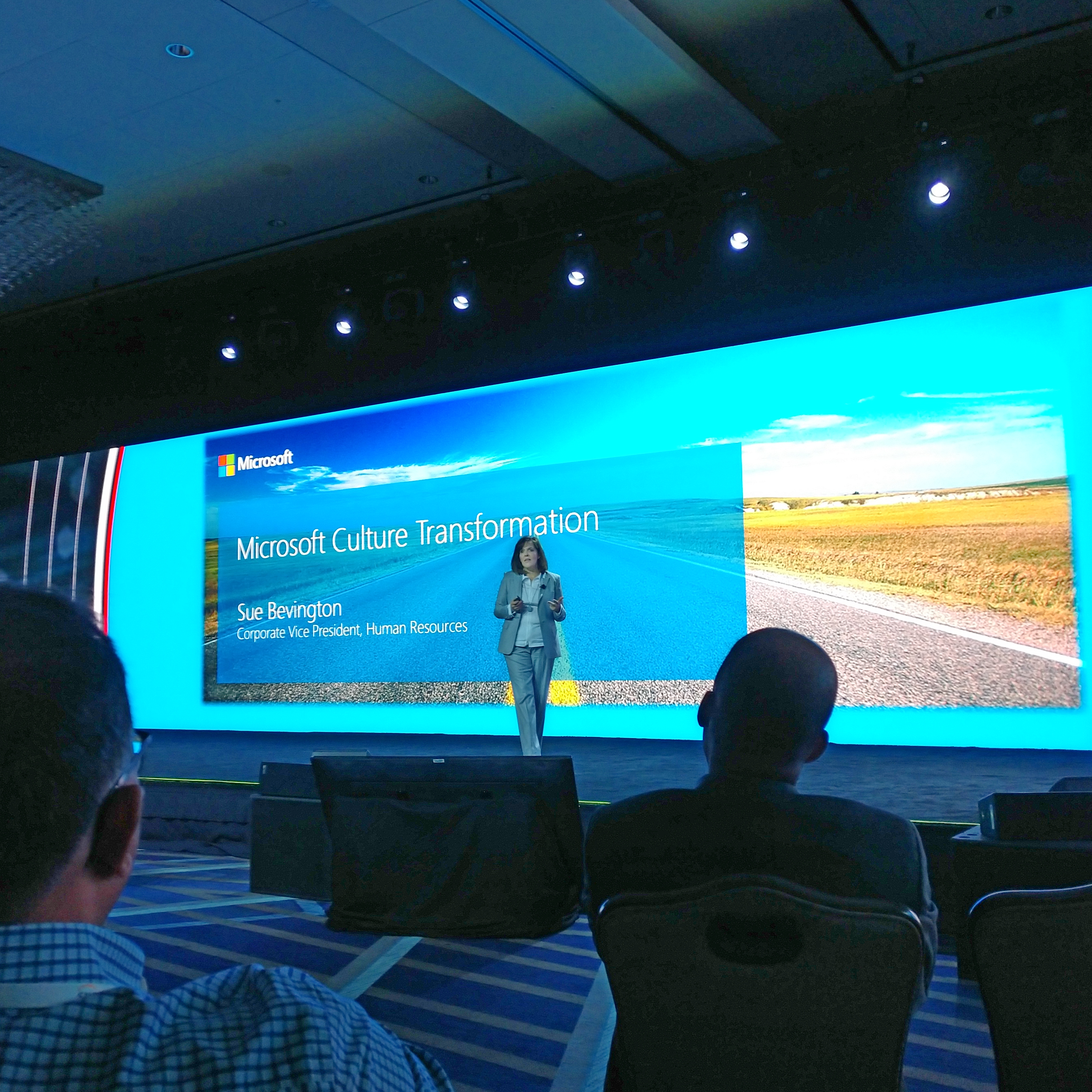 Rounding out the morning session, Microsoft’s corporate V.P., human resources Sue Bevington shared 10 things that Microsoft has learned about culture. As the world continues to transform in the digital age, a learning and intelligence growth mindset is key for employee success in the modern business. Bevington showcased Microsoft’s culture change from a “Me VS Them” to an “Us” mindset.