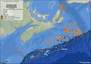 The 2D seismic dataset comprises of over 13,000 kilometers of 2D data throughout the Scotian Shelf, including the prolific Sable Sub-Basin that, in addition to the produced fields, contains ten undeveloped Significant Discoveries that have P50 recoverable gas reserves of 1.3 TCF. This basin is a great example of exploring for “Advantaged Hydrocarbons” and Searcher offer two data products: Firstly, Searcher will apply its proprietary post-stack reprocessing method to rectify navigation, metadata, amplitude, phase and time creating a contiguous legacy database that can be easily loaded into any interpretation software. Secondly, major improvements in the data will be provided by reprocessing the data through a modern pre-stack reprocessing sequence, including shallow water demultiple and deghosting. Reprocessing is expected to reveal numerous additional leads in the form of seismic attribute anomalies which can be calibrated with discoveries and producing fields.