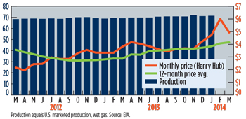 US Gas Prices ($/MCF) & Production (BCFD)