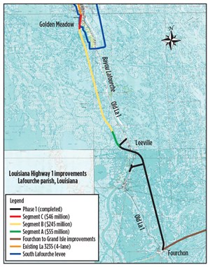 Construction should begin this fall on the next leg of the nearly 19-year effort to complete the elevated replacement of the time-worn, and often-impassable, Louisiana Highway 1 (LA 1) corridor from Golden Meadow, La., to Port Fourchon.