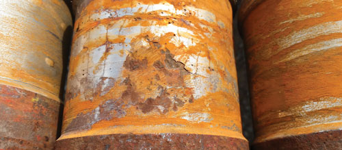Earlier this year, we were called out to location by an operator, who specifies one of our hardbanding wires. The firm was having pipe inspected and hardbanded during a rig move, and had found severe cracking and porosity, as well as flaking in some of the hardbands, Fig. 2. We employed an XRF survey to ascertain the basic composition of the material, which enabled the determination that neither the damaged hardbands, nor the bulk of the good hardbands, were our products.