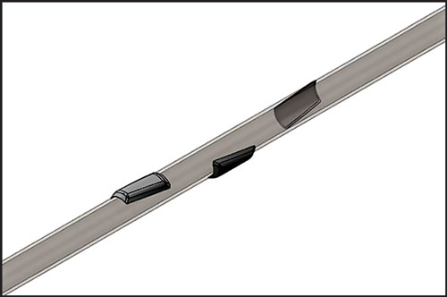 To improve cementing operations and, therefore, zone isolation, centralization of the rotational liner was reviewed next. Solid centralization has been used with solid expandable liners, and has proven capable for rotational installations with conventional liner systems, Fig. 4. It is available for positive stand-off, utilizing composite and spray metal materials.