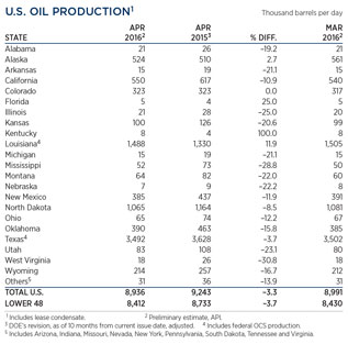 U.S. OIL PRODUCTION TABLE