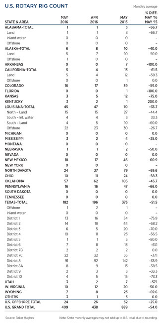 U.S. ROTARY DRILLING RIGS TABLE