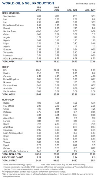 WORLD OIL PRODUCTION TABLE
