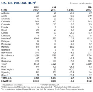 U.S. OIL PRODUCTION TABLE