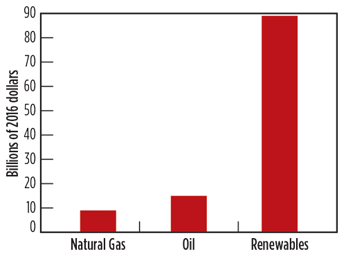 As shown in Fig. 1, during the years 2011-2016, renewable energy (solar, wind, biomass, geothermal and hydro) has received $89 billion in federal incentives, which is: