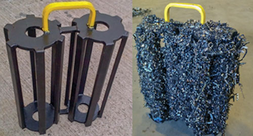 While the perf-and-squeeze system does not generate high volumes of swarf during milling operations, the perforation burrs need to be captured at surface. The high-strength recovery magnet is used to remove metal cuttings and prevent debris from returning downhole, Fig. 3.