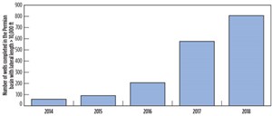 Once somewhat of a novelty, extended-reach laterals are now being drilled at an exponential rate across North America—including in the Permian basin. Over the last five years, the number of horizontal wells, completed with lateral lengths exceeding 10,000 ft in the prolific oil fields that make up this basin in West Texas and New Mexico, has increased nearly 12 times, jumping from 63 in 2014 to 813 in 2018, Fig. 1.