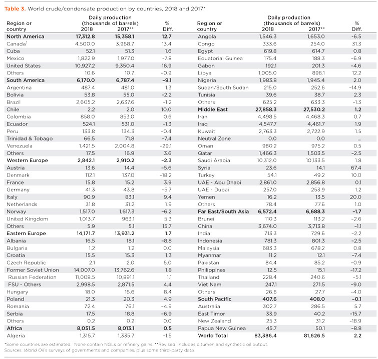 Rising oil supplies and falling prices in second-half 2018 constrained global drilling, but activity should post a measured gain in 2019. Virtually all the global oil production increase is due to U.S. shale activity.