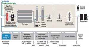 Satisfying water demands of up to 1.0 MMbbl per well can strain water sourcing systems and logistics, Fig. 1. The practice of sourcing produced water to supplement freshwater demands contributes to reductions in operating costs and disposal well load. Several key developments in the last few years have played a role in an industry-wide increase in the percentage usage of produced water to supplement freshwater consumption: