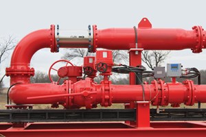 An Automated Proportioning System (APS) can blend fresh and produced water to a specific blend percentage or conductivity, Fig. 7. The ability to verify blended water quality on-the-fly is a function of sensors and actuators built into the proportioning system. Nearby automated pumps and manifolds support this process by automatically responding to pressure changes and stopping or diverting water to storage assets as needed. Depending on the blend ratio, extent of disinfectant demand, and overall initial water quality, this combination of automation and treatment can improve operational efficiency and safety at substantially reduced cost and effort. Other options include various chemical dosing and high-rate settling trains, ranging from simple AST’s for settling oxidizer dosed produced water, to engineered equipment, such as higher-rate bubble floatation rigs, to enhanced filtration equipment.