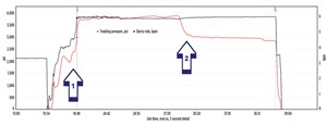 A distinct pressure signature at the surface provides feedback about tool activation and the effectiveness of the treatment, Fig. 2. An increased rate of flow causes the packers to inflate and seal off the zone. The pressure continues to keep the packers inflated and pushes the fluid into the formation. Each step is monitored, and when the appropriate amount of fluid is injected, the pressure is released, causing the packers to retract, enabling the tool to efficiently move to the next zone. The system transitions quickly from one zone to the next, ensuring treatment of every cluster, and that the treatment fluid is injected equitably across the formation. The hydraulically activated system provides placement of treatment fluids and can be designed for any pumping rate up to 30 bbl/min. (bpm), at a differential pressure up to 10,000 psi. This allows for high-rate, high-volume treatments at each perforation cluster.