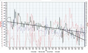 After a year, the well’s production decline was trending below the type curve, Fig. 1. This is generally a definitive indicator of damage from scale, paraffin, asphalt and/or iron sulfide scaling, which impedes flow and consequently requires treatment to address production impediment. The accelerated rate of decline of several wells in the basin was affecting the expected rate-of-return on fracture-treated wells.
