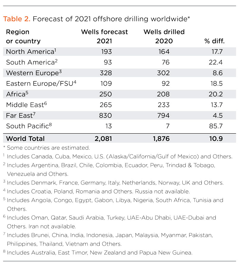 - Global offshore drilling is forecast to gain 10.9%, with increases expected in every region, Table 2.