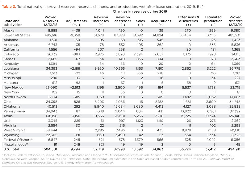 According to the U.S. Energy Information Administration (EIA), the decline in oil and natural gas prices in 2019 interrupted a two-year trend of rising proved reserves of oil and natural gas in the U.S. Proved reserves of crude oil and lease condensate remained essentially unchanged in 2019 as in 2018 (a slight increase of 0.1%), and proved reserves of natural gas declined 2%. Although the U.S. had enough extensions and discoveries of proved reserves of crude oil and natural gas to replace annual production in 2019, reserves were revised downwards, due to lower prices.