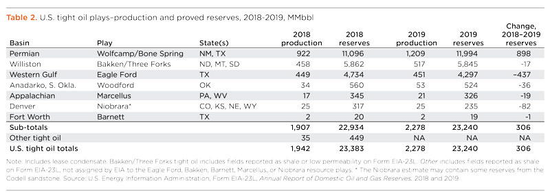 As of December 2019, seven major shale plays accounted for 49% of all proved oil reserves in the U.S. The Wolfcamp/Bone Spring play in the Permian is the largest oil shale play in the U.S.