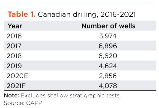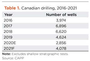 According to World Oil survey results, most provinces are predicting drilling will increase this year. The Canadian Association of Petroleum Producers is forecasting a significant increase, to 4,065 wells drilled (Table 1) across Canada, an increase of almost 33% from last year’s total of 2,731.
