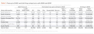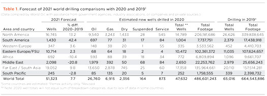 Venezuela. Any sort of improvement in Venezuela’s oil and gas operations is far in the distance, in spite of oil minister Tareck El Aissami’s assertions that crude output will quadruple by the end of the year. All that depends on tens of billions of dollars in investment that are unlikely to materialize, particularly after the Biden administration signaled no intention to dial back sanctions. Demonstrating that a financial breakthrough is unlikely, Equinor and TotalEnergies both relinquished joint venture positions in a key PDVSA oil production operation in the Orinoco Belt. Based upon these realities, World Oil expects drilling to decrease 30.6% in 2021.