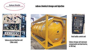 Subsea Shuttle’s innovative technology provides subsea chemical storage and injection that satisfy the need for longer and more cost-effective deepwater subsea tie-backs, Fig. 13. The system features a cost-effective modular design and delivers application flexibility regarding injection rates, autonomy, reliability, and compatibility with a wide range of production chemicals.