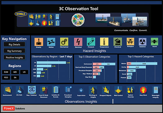 Based on multiple contributing factors from millions of data points, the technology delivered a standardized process to capture, analyze and produce real-time, reliable safety data across the contractor’s assets. Aligning the information against Noble’s key performance indicators, the system empowered employees by providing a live feedback point. Key HSE decisions could be made, based on trends identified and the findings presented through the platform. Over the past 18 months, the drilling company saw a reduction in not only its environmental impact but an increase in the safer execution of tasks. This information was also used by the client to share with its own customers to report its performance in a clear and transparent way.