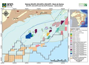 The Round 17 blocks were located in 11 high-potential and new frontier sectors of four Brazilian maritime sedimentary basins: Campos, Pelotas, Potiguar and Santos. They were offered under the concession model, in which the winning companies or consortia are defined by two criteria: the signature bonus (80%) and the minimum exploration program—PEM (20%)—offered by the bidders.