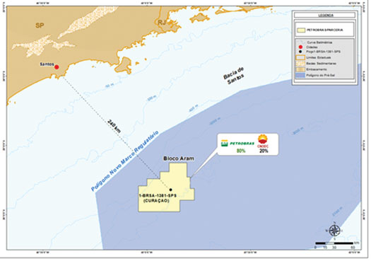 A Santos basin Aram block exploratory well showed hydrocarbons in November 2021, said Petrobras. Well 1-BRSA-1381-SPS (Curaçao) is 240 km from the city of Santos-SP, at a water depth of 1,905 m, Fig. 4. The oil-bearing interval was verified through wireline logging and fluid samples. Operations were continuing to target depth and verify the extent of the new discovery.