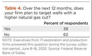 Speaking of increasing production through drilling, respondents were asked, “Over the next 12 months, does your firm plan to target wells with a higher natural gas cut?” In one of the more clear-cut sets of reactions, 62% of executives said their firm does not plan to target wells with a higher natural gas cut over the next 12 months, Fig. 4. The remaining 38% said their firms do plan to target such wells.