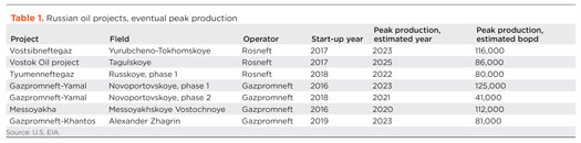 Russia’s oil production outlook is constrained by a difficult balance of greenfield and brownfield items. In the short term, oil production will benefit from the completion of greenfield projects under development, Table 1. But declining output from mature fields, primarily in Western Siberia (the country’s largest oil producing region), may offset any of those gains. Brownfield efforts to improve productivity, seen largely in more drilling and tying smaller fields to existing infrastructure, are unlikely to reverse a decline in total production late this decade, EIA reports.