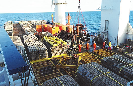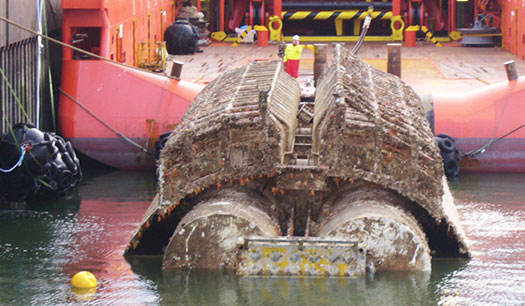 The offshore works, which were carried out over 74 days, using the company’s Skandi Acergy and Skandi Skansen vessels (Fig. 1), saw the recovery of 135 concrete mattresses weighing approximately 800 tonnes (Fig. 2), more than 12 km of rigid pipelines, SSIV/PLEM structures, 15.5 km of flexibles and umbilicals, spoolpieces and 1,500 grout bags and general debris.