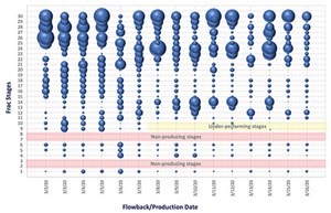 For perspective, Fig. 6 shows a high-resolution graphical representation of a stage-by-stage flow profile of a South Texas Eagle Ford shale well, in which 30 stages were monitored daily over a 21-day period. As with unconventional oil and gas wells, stage-level flow mapping of geothermal wells can significantly reduce costs and the environmental footprint by eliminating and/or remediating inefficient stages.