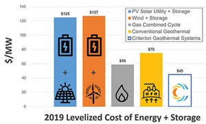 Unlike conventional geothermal systems, which exploit natural steam or extremely hot water trapped within deep rock formations, ESG is generally described as a methodology for injecting water at high pressure to re-open and promote the natural fractures in deep rocks and allow hot water or steam to flow into the comparatively larger-diameter producing wellbore, Fig. 2. The primary objective of an ESG is aligning the post-construction cost/kilowatt hour (KWh) of an onsite geothermal-driven power plant with competing renewable energy sources. The technology roadmap for the South Texas initiative is designed to bring the levelized cost of electricity (LCOE) down to $45/MWh, making it more than competitive in markets like Texas over the next few years, Fig. 3.