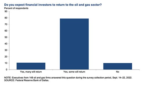 Another “special question” posed to executives was “Do you expect financial investors to return to the oil and gas sector? As shown in Fig. 3, a clear majority of the executives—79%—said they expect some financial investors to return to the oil and gas sector. Eleven percent expect many will return, while 10% expect investors not to return.