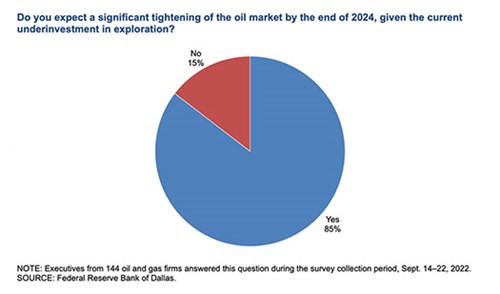One of the “special questions” asked of survey respondents was “Do you expect a significant tightening of the oil market by the end of 2024, given the current underinvestment in exploration?” Not surprisingly, 85% of executives said they expect a significant tightening of the oil market by the end of 2024, Fig. 2.