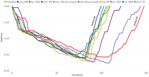 - Faster milling on the horizontal section: Even though the wells showed an average of 7.5 joints/hour KPI (mill & wash), the overall drilling parameters can still be adapted to further push the ROP on the lateral section.