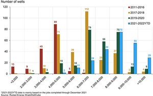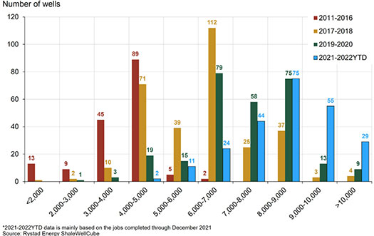 The trend. It is widely known that to increase unconventional play productivity, well designs have become longer, Fig. 2. The underlying premise is that greater lateral length allows for additional frac stages that eventually lead to greater well production and consequent return on investment. This technical and economic equation was pioneered by the U.S. shale industry, but closely replicated by the Argentine unconventional one sector.