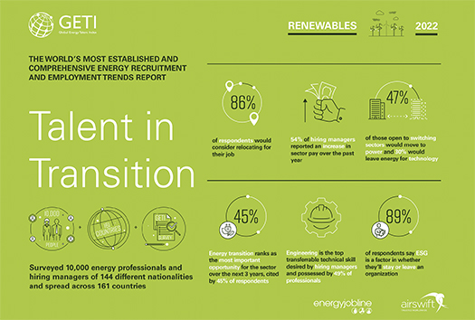 As the energy sector evolves, broader STEM industries shouldn’t overlook energy professionals in the war for in-demand tech talent. Airswift’s latest Global Energy Talent Index (GETI) charts the biggest trends of 2022, when it comes to technical capabilities of the energy workforce—and where that talent might go in the coming years, Fig. 1.