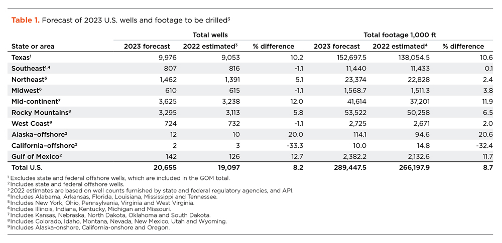 Although spending will decelerate in North America, the 2023 forecast for a 19% U.S. capex increase follows a near-record 46% gain in 2022. U.S. drilling will increase 8.2%, with total footage forecast to climb 8.7%, to 289 MMft of hole.