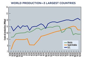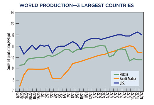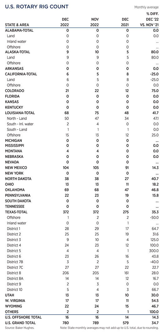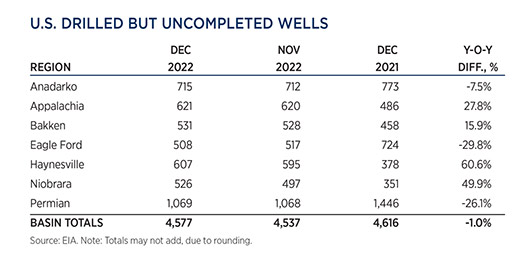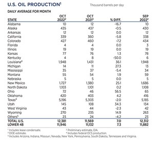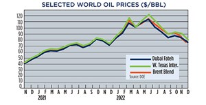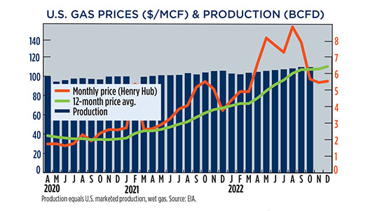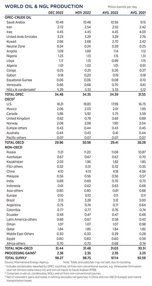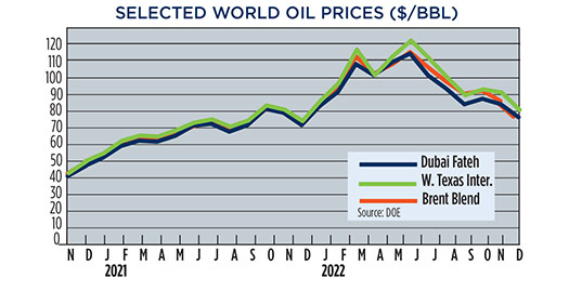 Crude prices declined in December, due to apprehension that steadily increasing interest rates will trigger a global economic recession. WTI fell 9.4%, to average $76.44/bbl in December, with Brent trading at $80.92/bbl, down 11.5% compared to November.